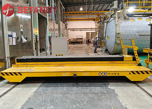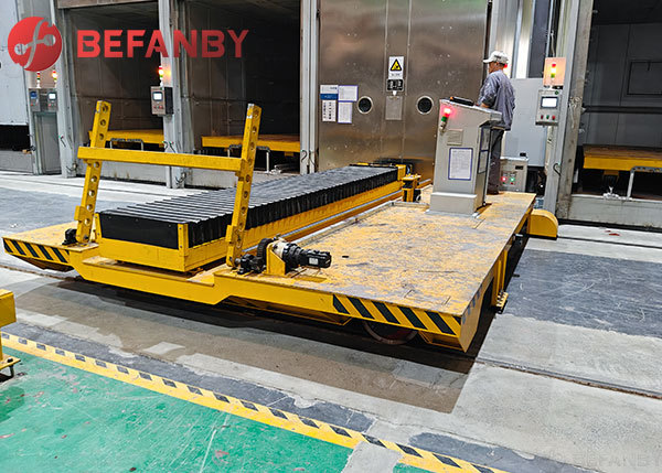 Inteligentny wózek transportowy szynowy RGV to wysoce wydajne urządzenie przeznaczone do transportu materiałów o wysokiej temperaturze i dokowania w piecach. Wózek porusza się po szynach, wykorzystując inteligentny system dyspozytorski do precyzyjnego pozycjonowania i zautomatyzowanej pracy, co znacznie poprawia wydajność i bezpieczeństwo produkcji.