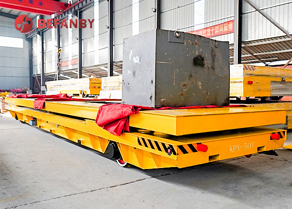 Ten wózek transportowy montowany na szynach posiada hydrauliczną konstrukcję podnoszącą, integrującą funkcje transportu i podnoszenia. Wysokość platformy można elastycznie regulować w zależności od warunków na miejscu, umożliwiając precyzyjne dokowanie z różnym sprzętem produkcyjnym, liniami produkcyjnymi i stanowiskami roboczymi. System hydrauliczny działa płynnie i ma dużą nośność, zachowując bezpieczne i niezawodne podnoszenie nawet przy dużych obciążeniach, skutecznie poprawiając wydajność załadunku i rozładunku oraz zmniejszając intensywność pracy ręcznej.